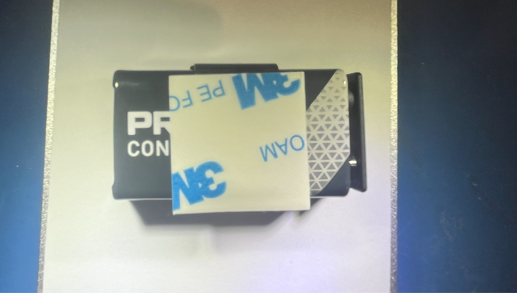 You need to attach the 3M square tape to the metal 9V battery clip, which is already clipped onto the 9V battery.